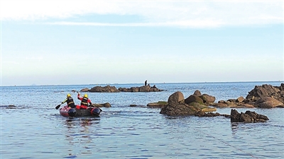 本报11月29日讯 11月28日下午2时许,一名男子在连三岛景区礁石上钓鱼时被上涨的潮水围困。消防救援人员到场后,驾驶冲锋舟出海将其救回。