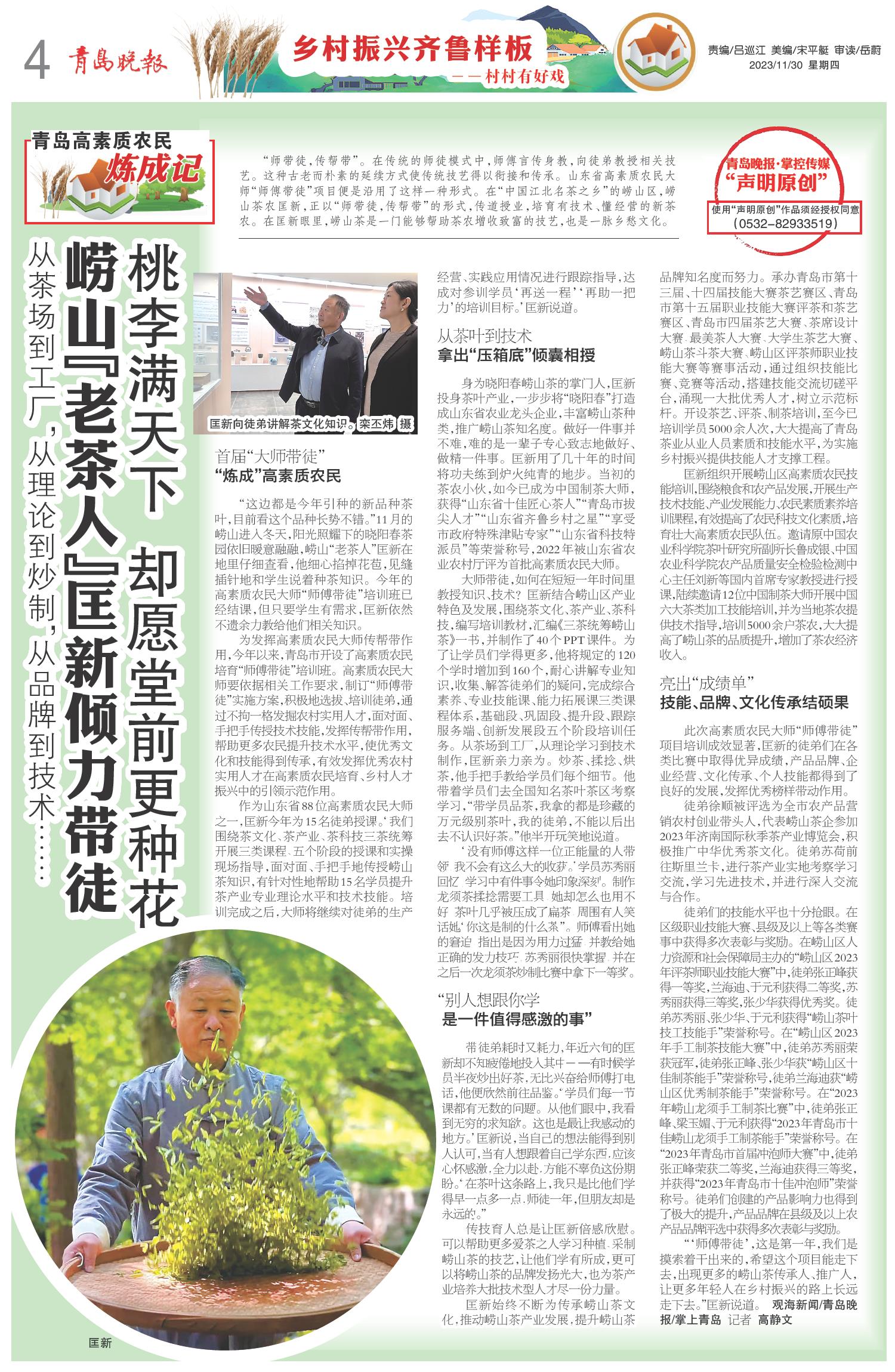 崂山“老茶人”匡新倾力带徒 桃李满天下 却愿堂前更种花