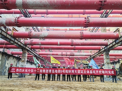 地铁5号线起于麦岛站,终到云岭路站,线路长约32.6公里,共设27座车站,其中12座为换乘站。线路连接市南、市北、崂山三区,是青岛地铁线网中具有环形功能的“C”型骨干线路。环湾大道站顺利完成主体基坑开挖为5号线的快速建设奠定了坚实基础。