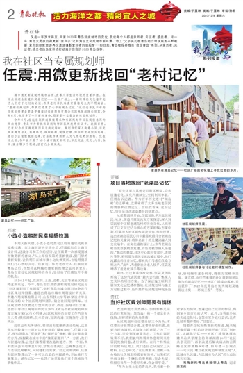 城市微更新是提升城市品质、改善人居生活环境的重要举措。在市北区湖岛街道的湖岛记忆——社区广场上,一面特殊的文化墙勾起了人们对于老村的记忆,很多老村居民站在背景墙处久久不愿离去。“感谢任规划师,帮我们还原了心中的湖岛记忆。”这位老居民口中的任规划师便是青岛中景设计咨询股份有限公司园林院副院长任震,今年6月,他又多了一个新的身份,那便是一名青岛的社区规划师。