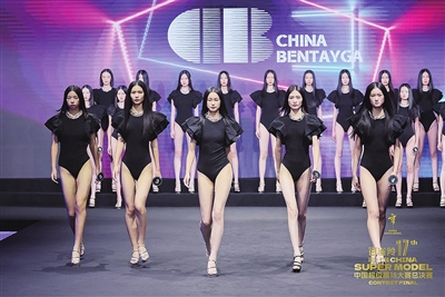 许宝文(第一排中)参加第十七届中国超级模特大赛总决赛。