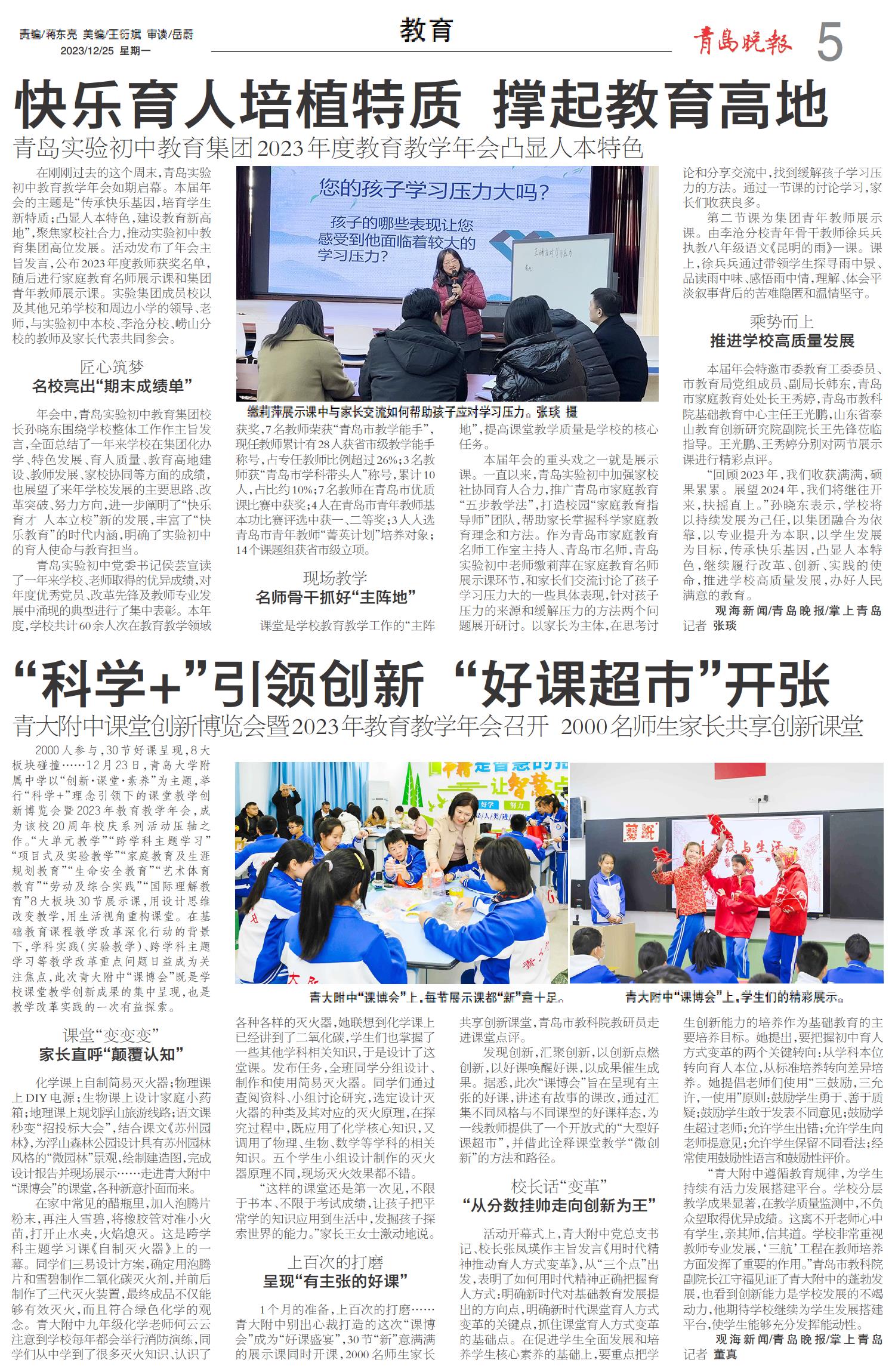 快乐育人培植特质 撑起教育高地