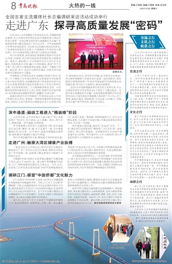 12月20日至23日,由中国晚报工作者协会主办、羊城晚报报业集团承办的全国百家主流媒体社长总编广东高质量发展调研采访先后来到广州、中山、江门,走进一线现场,零距离感受广东推动高质量发展的新进展新成效。