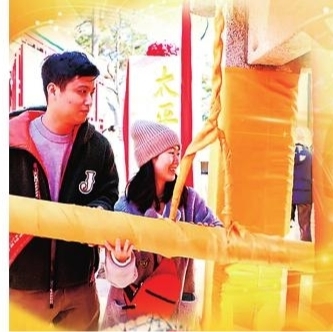 2024年1月1日,伴随着新年的第一缕阳光,“太平晓钟 福道崂山”文化活动开启,游客在仰口游览区敲钟接福。