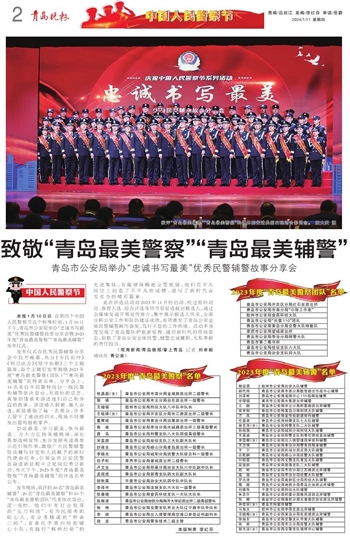 本报1月10日讯 在第四个中国人民警察节这个特殊时刻,1月10日下午,青岛市公安局举办“忠诚书写最美”优秀民警辅警故事分享会暨2023年度“青岛最美警察”“青岛最美辅警”发布仪式。