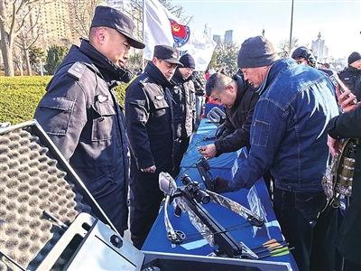 在禁毒支队的展台前,民警展示了海洛因、冰毒、麻古、摇头丸等毒品,提醒市民珍爱生命,远离毒品,并向公安机关积极提供线索;在森林警察支队的站台前,民警展示了工作中缴获的各类野生动物制品,包括一整张虎皮,让市民惊叹不已;在特警支队的展台前,英姿飒爽的特警队员手持狙击步枪、防暴枪、突击步枪、微冲、拐弯枪,展现了强大的战斗力,各种类型的警用无人机,更是让市民大开眼界。 观海新闻/青岛晚报/掌上青岛 首席记者 刘卓毅