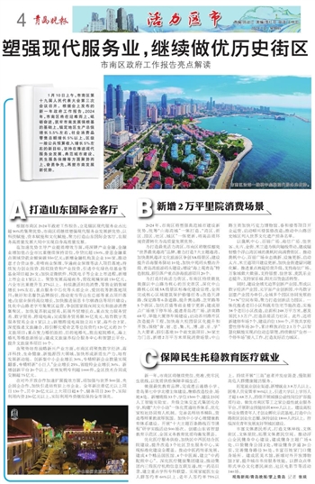 2024年,市南区将塑强典范城市建设新优势,统筹“山海湾城”一体打造,“湾区、街区、园区、社区、城区”一体更新,将高品质环境资源转化为高质量发展优势。