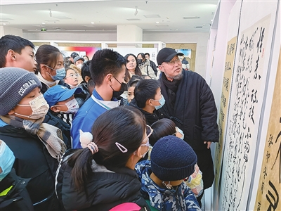小记者们跟随书画家赏画作、品书法。于娜 摄