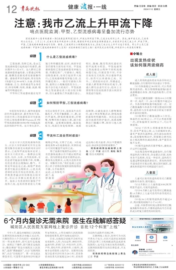 国家流感中心发布的最新一期《流感监测周报》显示,甲流比例明显下降,乙流占比有所上升。因此,继甲流之后,乙流受到公众关注。1月11日,记者从青岛市疾控中心获悉,根据我市哨点医院监测数据显示,当前我市呈现乙流上升、甲流下降,甲型、乙型流感病毒叠加流行态势。据悉,乙流通常以小规模或散发为主,因此乙流占比上升不必过于担忧。那么什么是乙型流感病毒?甲型和乙型流感病毒有什么区别?对抗病毒我们该怎么做?就市民关注的问题,市疾控中心专家进行解答。
