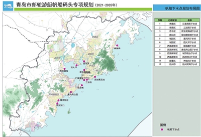 帆船下水点是大众开展帆船运动的重要场所,是青岛邮轮、游艇、帆船码头体系的补充部分。帆船下水点具有设施简单,对环境影响小等特点。为促进我市帆船运动事业的发展,规划结合滨海公园、广场、公共服务设施进行设置,《规划》共布局12处帆船下水点。