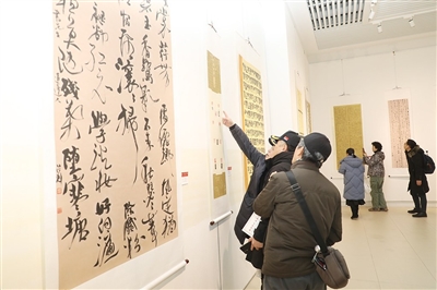 展出作品吸引参观者驻足欣赏。
