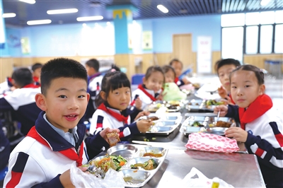 青岛同安路小学沉浸式校园主题餐厅受到孩子们欢迎。