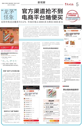 尽管电商平台上“龙茅”并不缺货,但市民却并不敢买。市民张先生告诉记者,自己只敢相信通过茅台官方渠道上购买的“龙茅”,虽然电商平台上货源很多,但毕竟是二手渠道,而且价格并不便宜,自己不会随意在电商平台上下单。