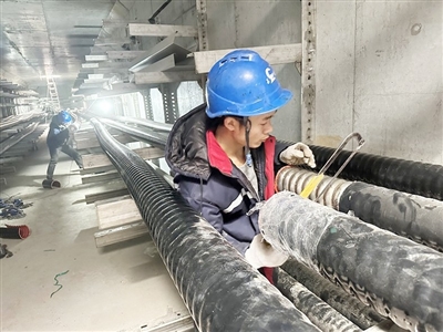 重庆路周边地下管廊工程完成电缆下地入廊施工。