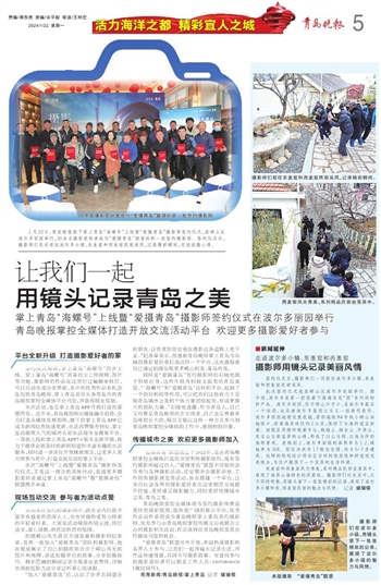 签约仪式现场,掌上青岛“海螺号”同步上线。掌上青岛“海螺号”具备自主上传视频、图片等功能,摄影师的作品在这里经过编辑审核后,可以自动生成分享界面,其中的优秀作品有机会在包括青岛晚报、掌上青岛首页头条等在内的青岛晚报掌控全媒体平台刊登,并获得现金奖励。