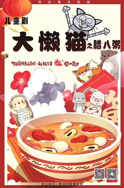 龙年大年初二、初三、初五,原创儿童剧大懒猫之《腊八粥》,将分别在梦幻剧场和李沧剧院上演。这部由青岛市歌舞剧院全新创排的儿童剧,将中华饮食文化进行加工提炼,用儿童剧的艺术形式赋予传统节日更深层次的解读和诠释,特别适合春节假期带小朋友观赏。