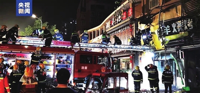 富洋烧烤店燃气爆炸事故救援现场。(央视新闻资料图片)