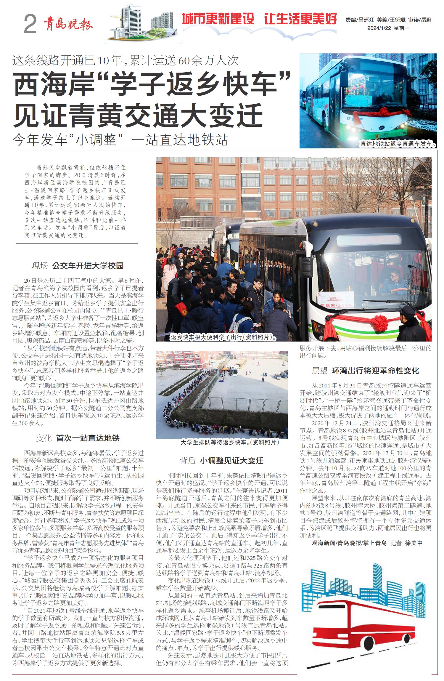西海岸“学子返乡快车” 见证青黄交通大变迁