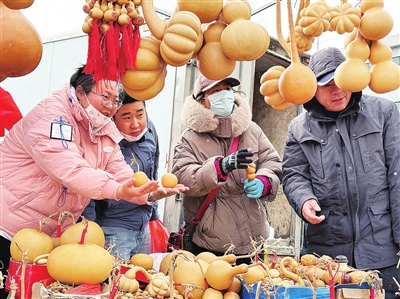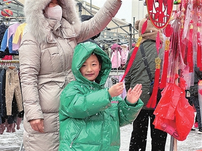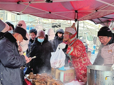 买对联、选花卉、吃美食……作为第一个入选青岛市级非遗的大集,李村大集因规模最大、人气最旺、商品种类最全而闻名,堪称青岛大集中的“天花板”。这里不单单是一处采购年货的大集,还是许多青岛人寻找年味的地方。当天,在雪景的映衬下,对联一条街显得格外红火。刚选购完年货的单女士说:“这次专程来买‘福’字和春联,这里花样多还实惠,我买的这个50×50cm的‘福’字才3元一张,买了这一摞才花了10元钱,放到别的地方根本不可能。趁着赶集我还要多买几张装饰一下家里,增加些年味儿。”