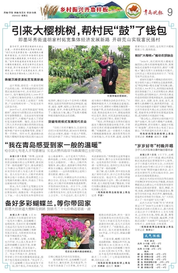 隆冬时节,在即墨区城南的大庙山北麓,一排排的樱桃树显得格外挺拔。“我们这里是即墨区唯一成规模的大樱桃种植园区,从2020年初陆续引进的3000多棵大樱桃果苗,今年将进入丰产期。”在环秀街道胡家村集体经济项目大樱桃采摘园里,村党支部书记范金杰介绍道,预计每亩地能产1000多斤大樱桃,这一特色产业发展起来后,将为村庄集体经济增加收入180多万元。