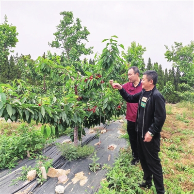 2019年6月,经环秀街道的“牵线搭桥”,胡家村与即墨区农业局茶果站的专家取得联系。在农业局专家的建议和引荐下,大樱桃产业进入了胡家村党支部的视野。随后,范金杰带领工作人员多次前往烟台农科院实验基地参观学习,到烟台、大连等地的大樱桃种植户家中实地观摩考察,掌握了第一手资料。同年11月,邀请烟台农科院大樱桃所张福兴院长到大庙山实地调研,确定引进9个品种的大樱桃树苗,包括农科院研发的品种福晨、福星、福金、福翠、福阳,以及市场上流行的黄蜜、美早、布鲁克斯等品种,制定了土壤改良方案,确立了发展大樱桃种植采摘休闲农业的思路。