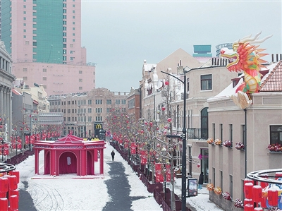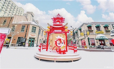 一场雪,让大鲍岛披上银装,吉庆红火的装置,在白雪的映衬下格外亮眼。 观海新闻/青报全媒体 记者 余瑞新 通讯员 吴佳璇