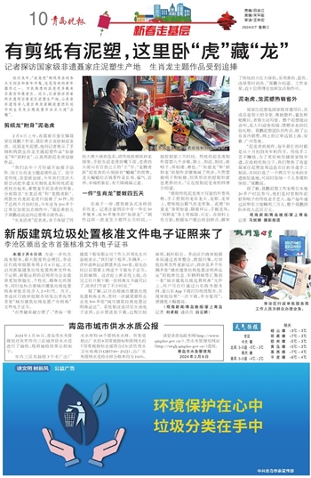 临近龙年,“泥老虎”频现青岛的各大文创店和新年市集,这是传统的新年摆件之一。市民熟悉的泥老虎多数来自高密市聂家庄。近日,记者探访国家级非遗项目聂家庄泥塑生产地,山东省非遗传承人聂臣希及聂鹏泥塑团队创作的生肖龙主题泥塑作品正火速“出圈”。