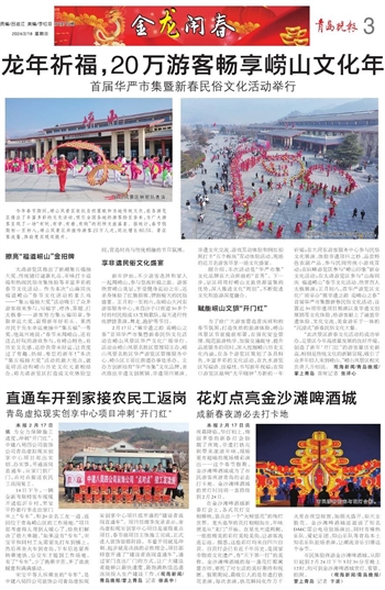 今年春节期间,崂山风景区依托自然禀赋和当地传统文化,在各游览区推出了丰富多彩的文化活动,吸引全国各地的游客纷至沓来,为广大游客呈现了一场“有玩、有学、有看、有购”的别样文旅盛宴。据统计,春节假期初一至初八,崂山风景区共接待游客20万人次,同比增长80.5%。景区客流量、体验度实现双提升。