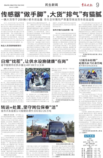 本报2月18日讯 春节期间,为保障市区供水平稳有序,青岛水务海润自来水集团对供水保障与服务工作进行了周密部署。据统计,2月10日至2月17日,该集团市区供水量497.09万立方米,日均供水量达62.14万立方米。