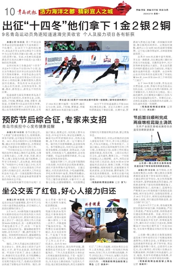 本报2月18日讯 第十四届全国冬季运动会短道速滑今天迎来最后一个比赛日。在18日下午进行的比赛中,青岛选手李文龙和公俐在个人单项中为山东代表队贡献1银1铜,女子接力队获得1铜。至此,9名青岛短道速滑选手在本次比赛中共收获1金2银2铜的优异成绩。