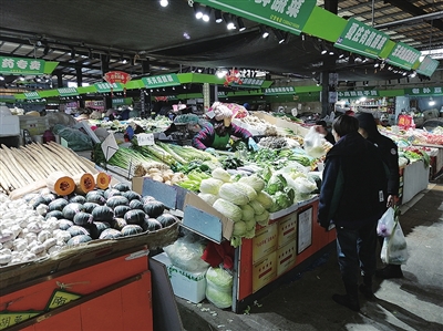 早在春节前,青岛五大批发市场商户就已深入“南菜北运”和北方设施省份的蔬菜主产区,开展产销对接,锁定货源,组织协调重点保供企业拓宽供货渠道,加大调运力度,按照2-3天的市场需求增加周转量,提前锁定货源,提高补货上架频率。