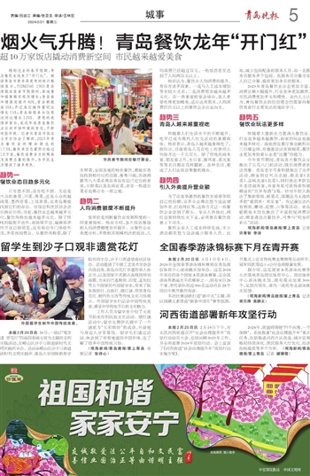 刚刚过去的春节假期,青岛餐饮业迎来了“开门红”。根据青岛市商务局发布的统计数据显示,TSINGTAO 1903青岛旗舰店在春节假期间,客流量和销售额实现双增长;青岛春和楼客流提升40%,营业额提高35%;乔记渔庄接待量同比增长15%;青岛船歌鱼水饺客流同比增长120%。漂亮的成绩单背后,是近年来青岛餐饮业应对市场环境的变化,不断转型升级。记者从青岛市饭店与烹饪协会了解到,2023年青岛餐饮业的增加值达到17.5%,餐饮单位总量预计超过10万家,餐饮消费活力的释放及消费总量的提升,为市民生活增添了诸多亮色。