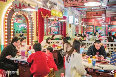 今年春节期间,青岛各大餐饮企业推出了五花八门的活动,吸引消费者到店用餐。青岛老字号春和楼推出了众多活动,顾客到店可点名厨、做名宴(名菜)、品味名宴(名菜),同时推出多款百年老店福寿宴,当宴寿星可获得春和楼赠送的“百岁寿酒”2瓶。针对年轻人推出了集新景致、新菜式、国潮品为主流的多款“爱朋米· 欢乐宴”。乔记渔庄店内有剪纸、雕刻、泥塑、古筝等活动。青岛船歌鱼水饺也推出了丰富的促消费活动,顾客进店点餐饺子,可参与“咬春好彩头”活动。
