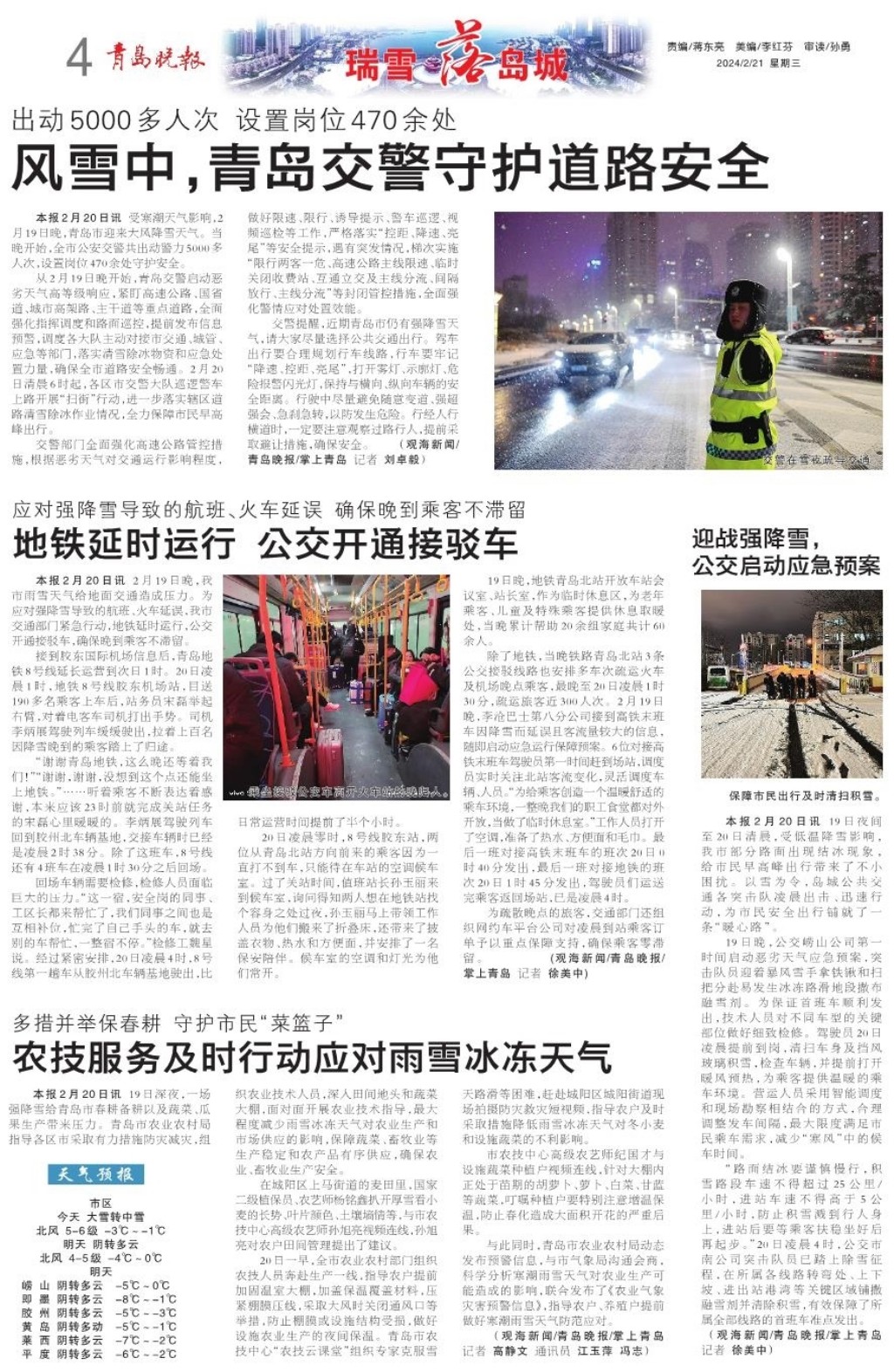风雪中,青岛交警守护道路安全