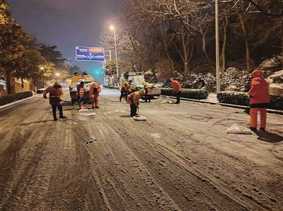 本报2月21日讯 20日晚青岛迎来又一轮强降雪。在低温雨雪冰冻灾害面前,市南区的基层党员干部职工如点点“微光”汇聚起清雪“洪流”。