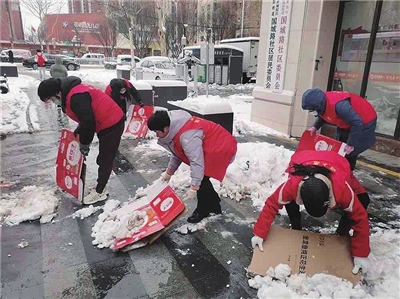 本报2月21日讯 近日强降雪给居民生产生活带来较大影响。为保障辖区独居老人、高龄老人、困难群体等生活出行安全,城阳区积极行动,发动各级文明实践阵地开展“寒雪送温暖·志愿暖人心”文明实践志愿服务活动。志愿者们深入社区(村)、小区,送温暖、送关怀。
