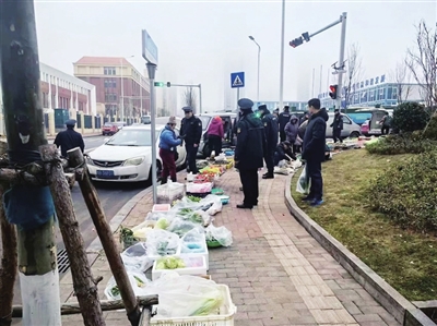 “执法中队本着人性化执法的原则,春节前夕,摆放了禁止从事占路经营活动告知书的牌子,在保证居民出行安全的前提下,告知摆摊商贩尽快处理手头上的物品,年后上班严格依法清理整治。”金家岭街道麦岛综合行政执法中队执法人员告诉记者,中队在了解到周围居民实际需求后,同时积极与社区联系对接,预计今年4月社区农贸市场将建成使用,让商贩有固定经营场所。
