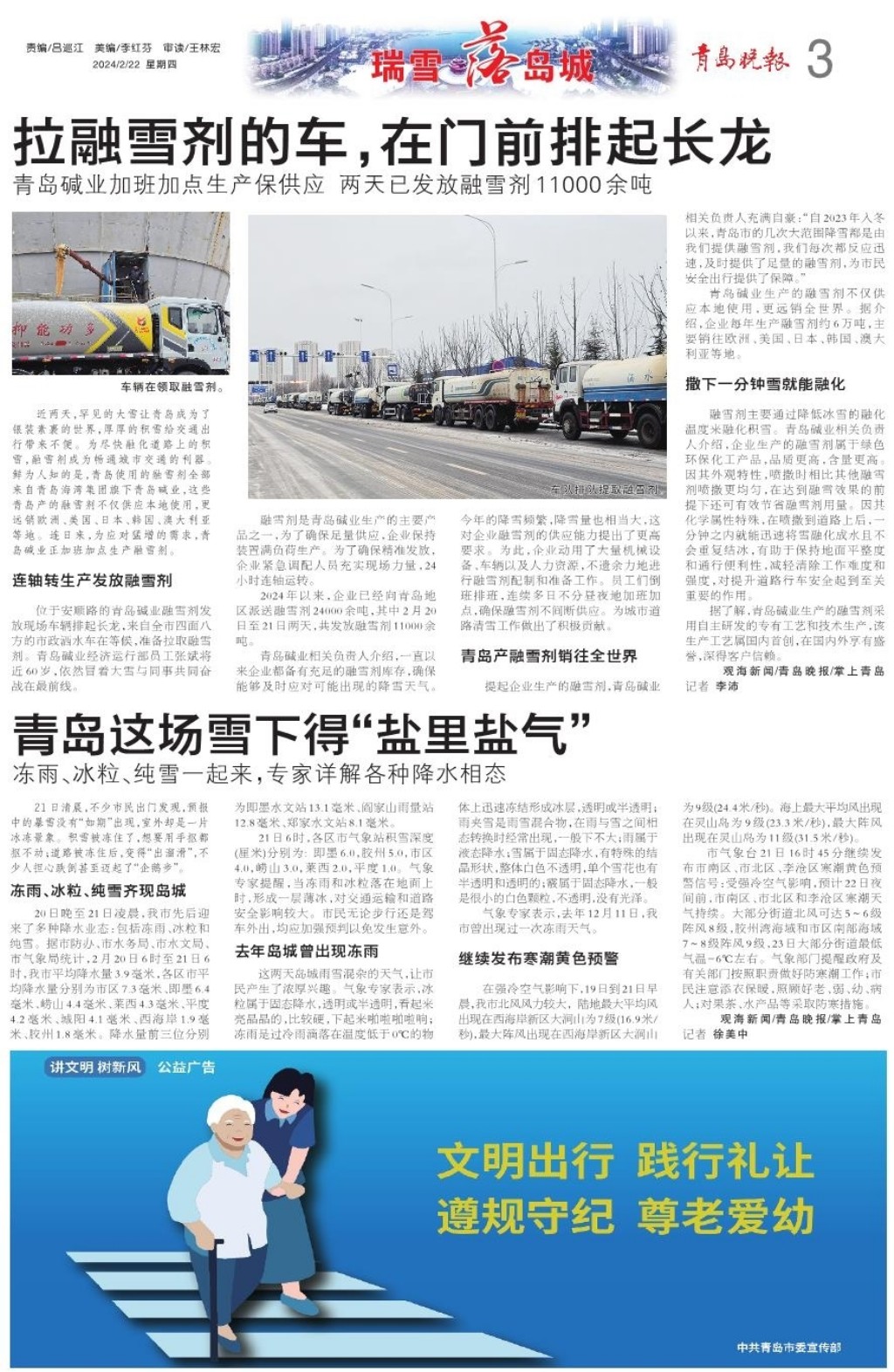 光融雪剂撒了1000多吨