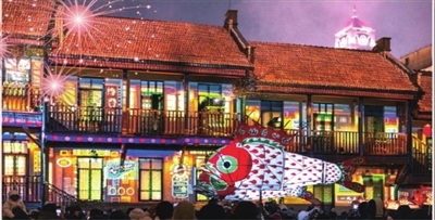 在大鲍岛文化休闲街区,“沉浸式光影演出——广兴里·绮光幻境”上演,为游客呈现广兴里以及这座城市的沧桑百年。