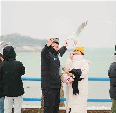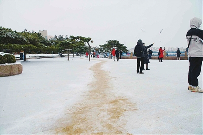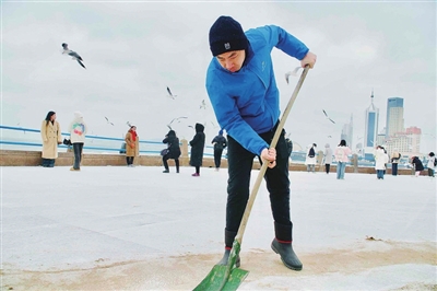 2月20日起,青岛接连迎来多年未遇的暴雪、冰雨天气。难得一遇的栈桥雪景吸引了大量市民、游客前来拍照。王万波告诉记者,受落叶缓扫的启发,栈桥第一次尝试落雪“缓扫”——保洁人员就在景区扫出多条通道撒上防滑细沙,既保障市民、游客行走安全,又保留雪景。在扫雪时,王万波还给保洁人员提了建议:“咱们别直来直去地扫,清扫路线像林间小路那样,有种曲径通幽的感觉,这样更美。”