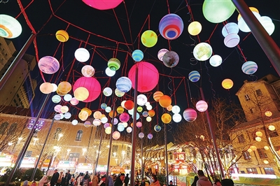 CHAO宇宙艺术装置《三阳开泰》位于博山路广场,这是整个剧本游的起点。“该装置以三个恒星和99个行星构成。”郑见伟表示,这样的设计表达了中华文化中“一生二、二生三、三生万物”的宇宙生成论,又传递了冬去春来、阴消阳长,万物生长,岁首吉祥“三阳开泰”的美好祝福。