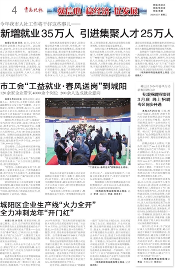 龙年伊始,《城阳区制造业“两翻番 一提升”攻坚行动方案》出台,旨在深度实施工业立区、制造强区、产业兴区战略,突出高科技制造业发展导向,引项目、强龙头、补链条、搭平台、促转型,高水平规划建设专业园区,招引培育链主企业和产业生态,推进工业经济提质增效、提档升级,塑造城阳高质量发展新优势。方案提出,到2027年,城阳区高技术制造业投资、工业增加值实现双翻番,工业增加值率持续提升到25%以上,在先进制造业领域再造一个新城阳。对于今年“三十而立”的城阳来说,方案的提出是对自身制造业产业底气与自信的释放,是新起点上的一次再超越。