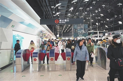 节日期间地铁成为市民出行的重要选择。