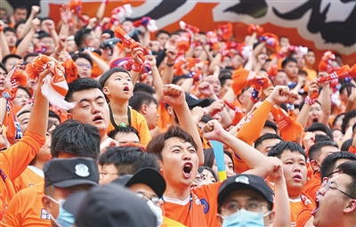 球迷为青岛海牛加油呐喊。栾丕炜 摄