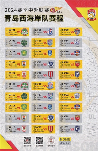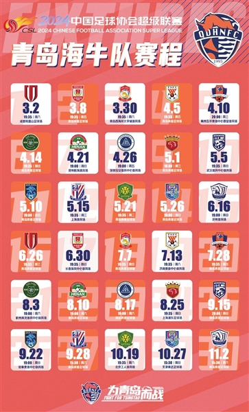 2月25日下午,青岛西海岸足球俱乐部2024赛季中超联赛出征仪式举行。秉持“为青岛而战,为西海岸新区而战”的口号,2023赛季,青岛西海岸足球俱乐部历经30轮联赛的拼搏,提前一轮冲超成功,成为西海岸新区首支站上全国11人制男足顶级职业联赛舞台的球队。