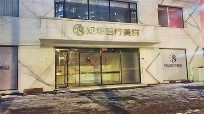 随后,记者通过企查查搜索发现,青岛双华医疗美容注册公司为青岛双华医疗美容有限公司,地址为市南区江西路35号6号楼网点,公司成立于2021年8月。记者拨打了注册手机号码后,一位男士称打错了,随即挂断电话。记者还搜索到了一家名为青岛双华医疗美容有限公司市南双华医疗美容门诊部,显示的最新动态为,2022年6月24日被行政处罚,违法事实是该单位未按照国务院卫生主管部门的规定填写病历资料。2月28日,记者来到市南区江西路35号6号楼网点发现,青岛双华医疗美容的门头还在,但是大门紧闭,透过玻璃门能看到地上有一层厚厚的灰。然而,企查查显示,青岛双华医疗美容注册公司、青岛双华医疗美容有限公司市南双华医疗美容门诊部均为“在业”状态。