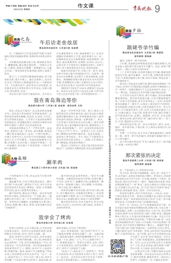 “肉变小了,颜色变白了,说明熟了。”听到外公的指导,我立马把肉串从烤炉上取下,和家人一起分享。这次尝试让我不但学会了烧烤,还学会了做事要有耐心,才会取得成功。