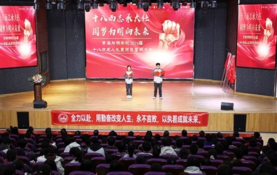 青岛为明学校举行十八岁成人礼暨高考百日誓师大会。 王小帅 摄