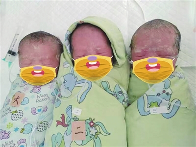 就在余女士妊娠到34+6周时,她的血压突然出现升高,超过140/90mmHg,收缩压最高时达157mmHg,结合尿蛋白结果,足以诊断子痫前期,病情危险程度骤然激增。瓮占平当机立断,给予硫酸镁解痉预防子痫发作,向余女士解释了病情的变化和危险程度,需要立刻终止妊娠。余女士经过考虑同意终止妊娠,于是瓮占平带领产科团队做好充分术前准备。本部麻醉手术科主任侯念果、儿科副主任王彩霞分别带领麻醉手术团队、新生儿团队共同保驾护航。随着一声声响亮的啼哭声,医护团队悬着的心终于放了下来,余女士顺利诞下一名女婴(2030g)和两名男婴(1985g、1775g),母婴均安。术后,余女士恢复顺利,三胞胎状态良好。