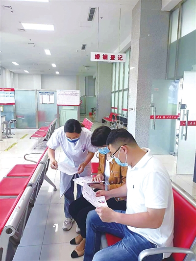 在婚姻登记处,工作人员向新人科普SMA筛查工作的意义。